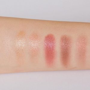 給大家看一下試色,粉質是不是真的很細膩呢?然後不得不提一下這款打亮品真的很有誠意,連附贈的刷子都不是隨便應付的品質,刷毛柔順,抓粉力也很夠。購入一盤也不用特地再尋找其他好用的刷具,真的很貼心。