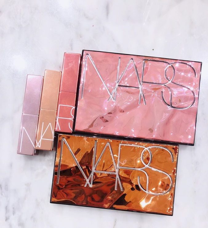 NARS今年新品,外殼以鏡面為發想,設計了玫瑰色調搭配了美好的金屬光澤的包裝,內容物則是包含了霧面、珠光、金屬感的12色限量色眼影。發色度非常美好,一抹上便是濃郁且飽和的色澤,讓你隨心所欲變換濃淡,打造各種場合皆合適的高質感眼妝。