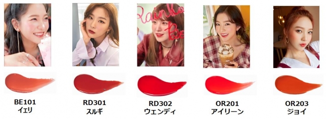 組合內容物:光澤閃耀唇釉 5支(迷你款)、RED VELVET的獨創限定照片卡 1張
