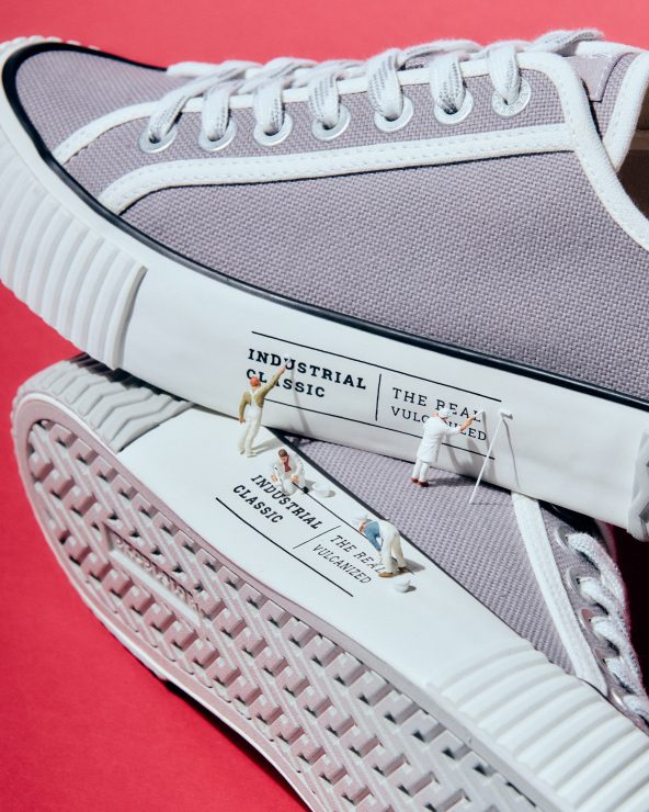 大膽將前後兩色的中底解構,中斷處烙印品牌引以為傲的「THE REAL VULCANIZED」與「INDUSTRIAL CLASSIC」字樣,致敬最經典的硫化鞋款,讓我們能擁有歷史的文化底蘊,從而創造具有現代感的時尚鞋型,讓機能與時尚感有並存的可能。顏色有探險黑、旅行白,和冒險灰,回歸最經典的黑白灰三色為主,一樣具有極高的辨識度。