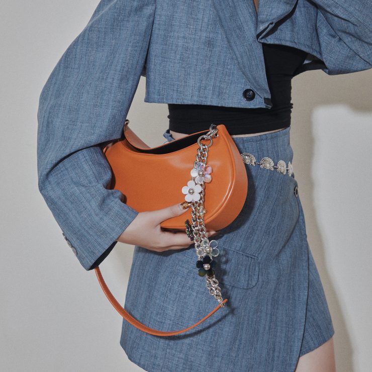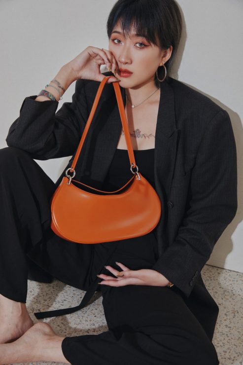 夏季包款從設計至顏色搭配,延續鮮豔的色彩為主調,運用泫雅愛用的Bbul Bag 牛角包,獨家推出台灣限定色赤茶橘,是首次在海外推出限定色設計。