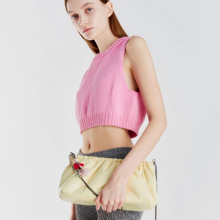 喜歡手提款式的人也不孤單,小尺寸的Flap Mug Bag S 推出夏季新色,有棉花糖藍和萊姆黃兩色,讓充滿夏季空氣感的泡泡糖粉彩色,展現甜美純淨又清爽療癒的效果。