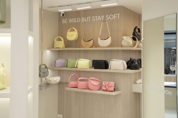全店以品牌本身韓國的DNA有所呼應,混合高端時尚跟街頭風格,碰撞出 SAMO ONDOH 店面的獨特魅力,整體選用柔軟的奶茶色系店裝,除著展現摩登氣息外,亦能襯托品牌多種顏色與豐富的配件,讓品牌的包款做最完整的展現。