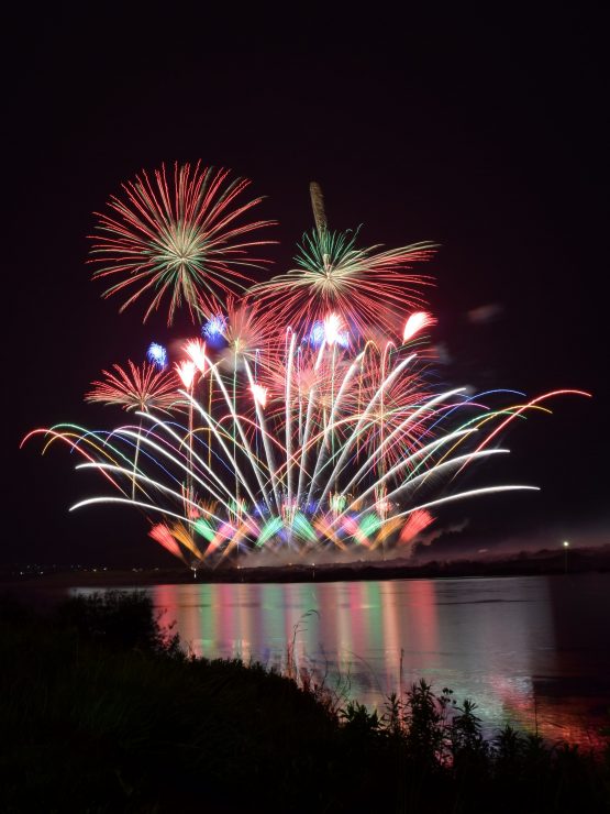 長岡祭煙火大會固定於每年8月2日、3日舉辦,其中有三大看點不可不知,第一點是直徑650公尺的巨大煙火,代表著「長岡花火」的名物「三尺玉」,以日本第一大河信濃川作為背景,炸開巨大的煙火花;第二點是連發的超大型花火尼加拉瓜瀑布;最後則是祈願的「浴火鳳凰」,隆重又充滿希望,絕對值得一看!