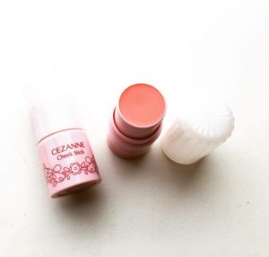 不容易掉色的棒狀腮紅。添加了高密度的附著成分,讓腮紅與肌膚緊密不掉色。採用了高反光的精油以及亮面粉,很適合亮面妝感、讓氣色好。
