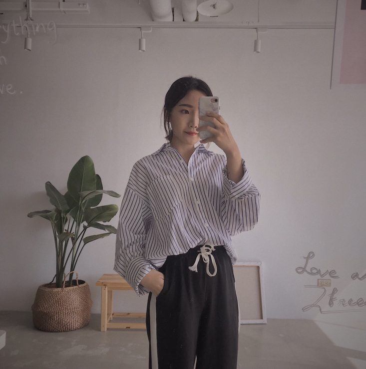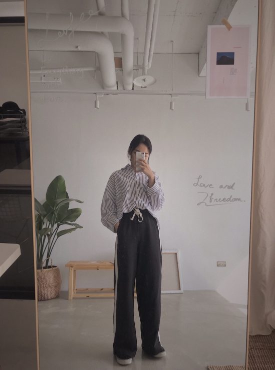 有的時候就是想走很俐落的風格,藍白襯衫與高腰的西裝寬褲總能穿出這樣的感覺,而且還可以馬上有大長腿,160的我看起來比例也不至於太差。