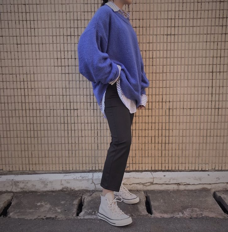 對腿型比較沒有自信,褲管較寬的,像是小直筒那種特別能修飾腿型,看起來還會有直直的錯覺。
