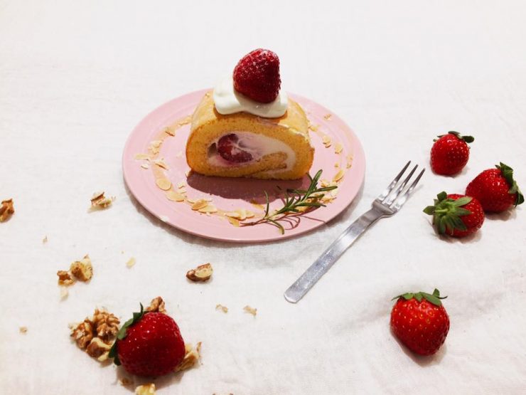 還有一次的用餐,是小編被沐樂咖啡的臉書中"草莓生乳捲"的照片燒到,草莓控的小編決定週末手刀衝去享用!平日的沐樂咖啡已有不少客人,週末當然就更不用說~相當熱門,小編等待了一陣子才能入座,但當吃下一口草莓生乳捲時,瞬間覺得等待是值得的!沐樂咖啡的草莓生乳捲主體是戚風蛋糕,再搭配甜而不膩的草莓內餡,真是印證了簡單就是美味的道理,不需要太複雜的食材,就能帶出草莓的新鮮和生乳捲的綿密的口感。可見店家需要製作甜點的功力高深啊!