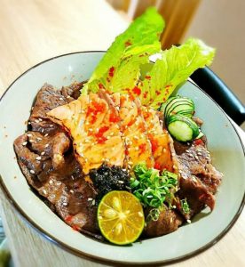 這款丼飯的人氣可說是非常高,十分受到大家喜愛。牛肉跟鮭魚經過炙燒後,牛肉的香氣慢慢散出來,再搭配一點點的松露,整香而不膩,十分順口。