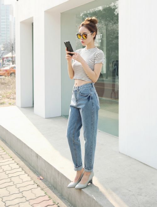 根據短款上衣的顏色、花紋和牛仔褲藍色的明亮度的不同,搭配穿搭起來的感覺也很多變。