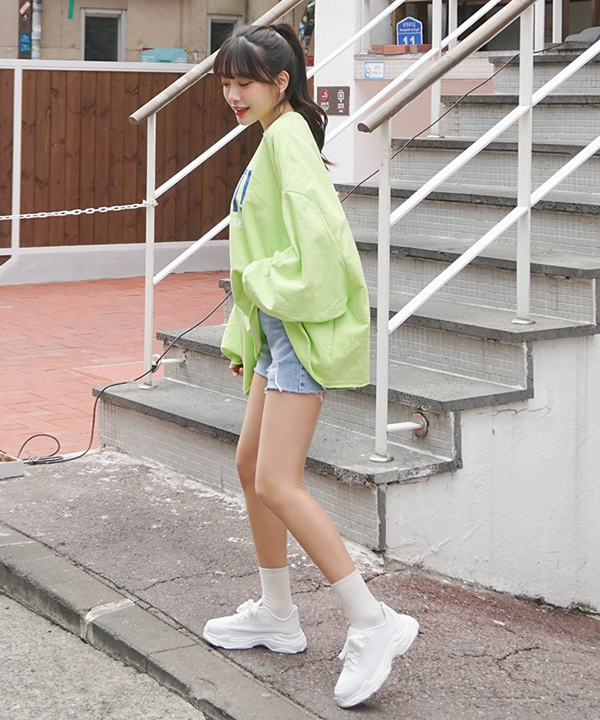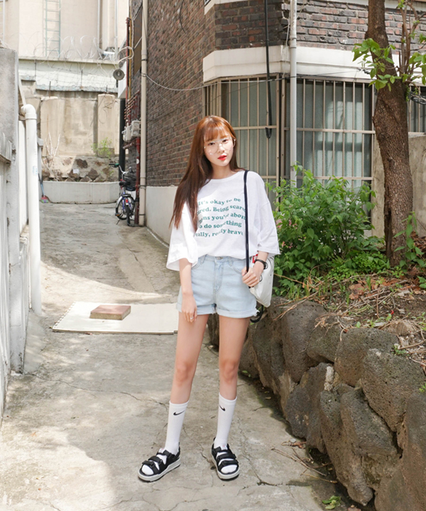 在中央印上LOGO字樣或插畫圖案的上衣存在感十足,與牛仔短褲可說是非常相襯。同時因為搭配起來無須任何穿搭技巧,即使是趕著出門的忙碌早晨也能輕鬆完成。