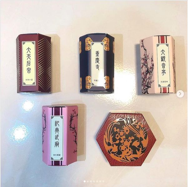 日據時代末期,醋矸曾因戰爭而被炸毀,後來重建之後改放到速報司面前,但一樣不改靈驗程度,廟方還準備了紅紙讓你可以書寫來訴諸心聲。而重慶寺的口紅也採用跟醋一樣的白色護唇膏,外包裝是藍底搭配寺廟窗花跟守護意味的雕鎖(請往右點選看試色)。