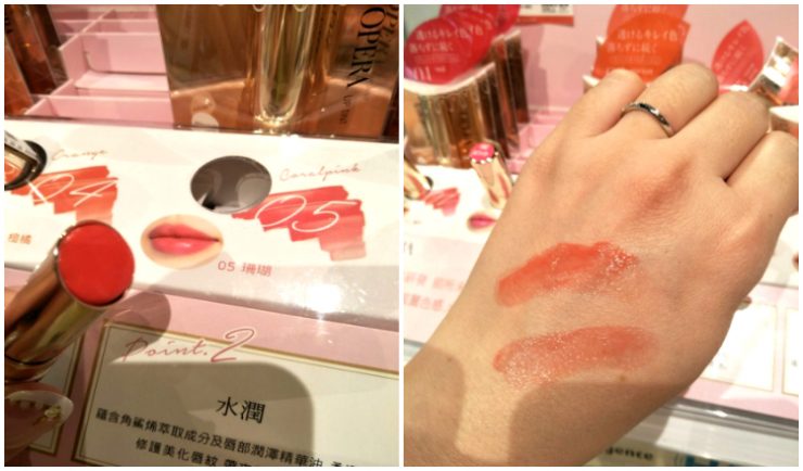 既然網路上如此人氣,到底這條唇膏有和吸引人之處呢?很多人喜歡唇膏質地清爽的感覺,害怕嘴唇給人黏膩、厚重的感受,水潤唇膏強調保濕的效果,OPERA唇膏的成分蘊含角鯊烯萃取成分及唇部潤澤精華油,能修護並美化唇紋。實際擦起來感覺質感很柔滑、也很服貼,水嫩滋潤但卻不會有太過黏膩的感覺。至於令人在意的顏色部分,OPERA唇膏的顏色是運用獨特配方,讓唇膏能與唇部本身的水分融合,經過唇溫及時間的轉化,讓唇色持續散發不同層次感的綺麗色澤,打造自然明亮的絕美氣色。而唇色中則是帶著低調的光澤感,顏色越深越具有光澤度,能隨著自己的塗抹需求來調整,整體表現極優。