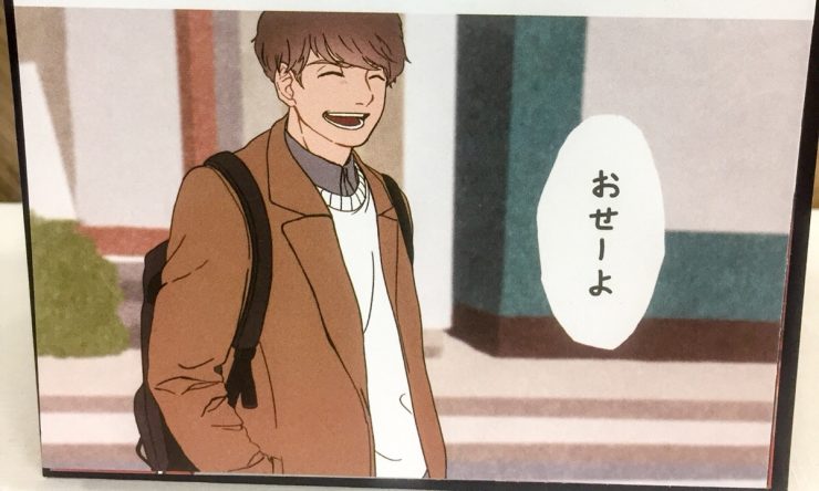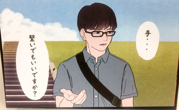 (平時你總是跟他打打鬧鬧,很愛捉弄他,他也總是笑一笑而已,但今天的他感覺一直很不自在,走到一半他終於擠出一句)