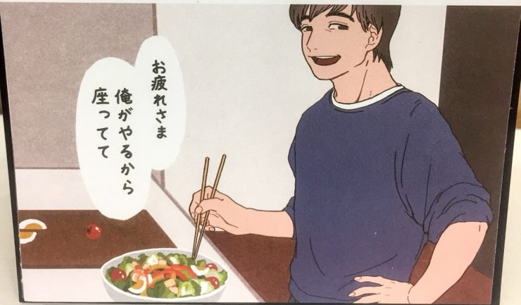 (在公司受了一整天鳥氣的你,回家看到他站在廚房準備兩人的晚餐)