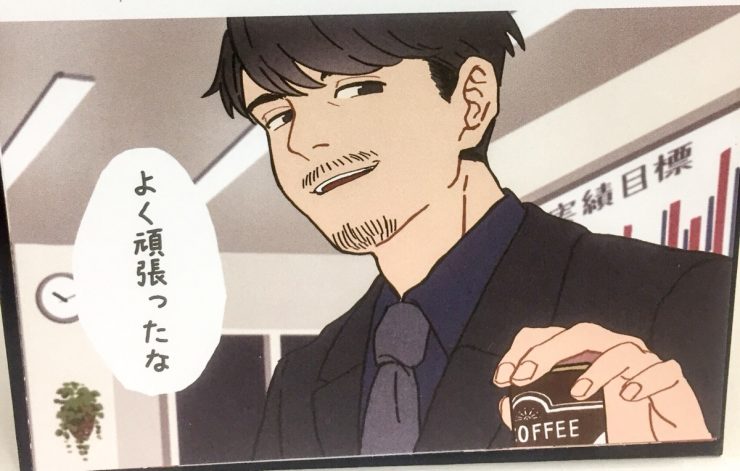 (為了這個會議連夜趕工的你,在會議結束鬆一口氣的時候,平時嚴厲的帥大叔上司對你說)
