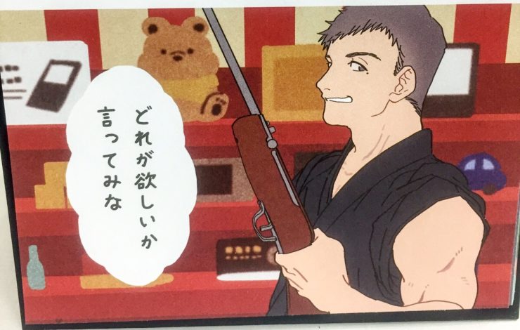 (第一次跟他一起穿浴衣參加祭典,逛到射擊攤位的時候你突然覺得很懷念而興奮起來,於是他拿起槍說)
