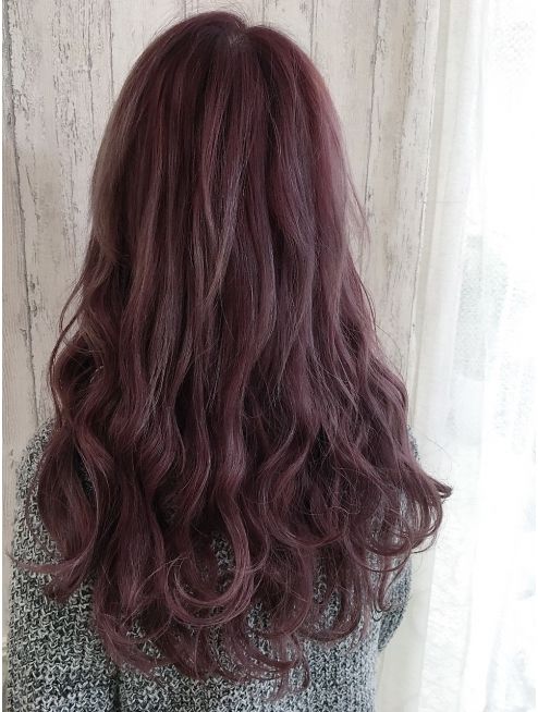 紫色頭髮很有輕透感,散發著非常可愛的氛圍。就算不經過漂色就直接染成暗紫色,也能輕鬆打造出更加成熟的迷人風韻。