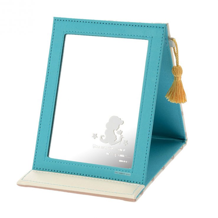 這麼美的化妝鏡是不是也讓人很想拜一波!「阿拉丁茉莉化妝鏡」以女主角茉莉代表的湖水藍為設計概念,化妝鏡外表設計則是典雅的茉莉圖樣手繪設計,拿在手上感覺整個人也氣質優雅了起來。