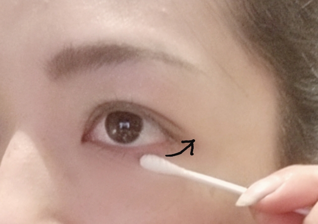 用棉花棒朝同一個方向旋轉,以滾動的方式,眼皮被暈染的地方就能輕鬆擦掉,所以在化妝包、隨身包內補充幾支棉花棒很重要喔。