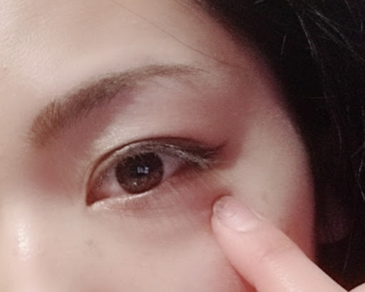 這是使用眼影打底霜後過了幾個小時的照片,眼妝大致上還是維持著剛上完妝的樣子,下眼皮完全沒有暈染的現象。