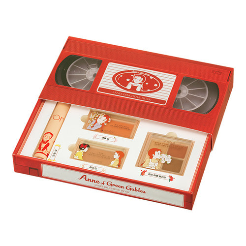 清秀佳人這一組彩妝盒是不是設計超特別?!有著復古的紅色錄影帶外型。滿滿的童年回憶啊~這組彩妝盒裡有著腮紅、眼影、及唇釉。整個就讓人好想收藏啊~