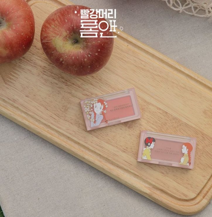 這次的《清秀佳人》系列彩妝一口氣推出了唇釉、腮紅、眼影、氣墊粉餅,全部都都換上粉色包裝,而且都印上了上紅髮安妮的卡通圖樣,懷舊又可愛!