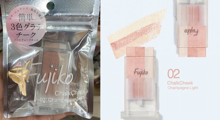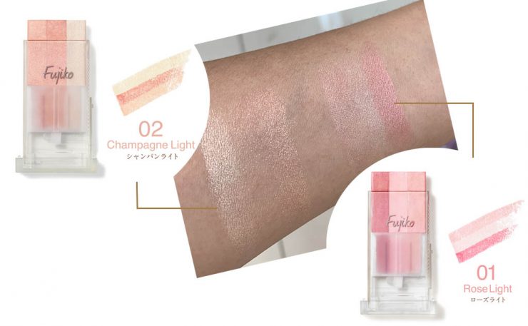 Fujiko Chalk Cheek 3色漸層打亮腮紅粉筆霜共有2款色號: # 01 RoseLight (光之玫瑰)、# 02 Champagne Light (光之香檳)2種顏色。