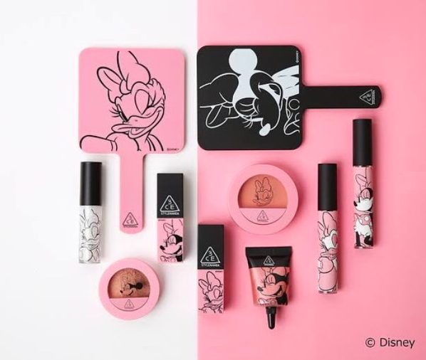 以迪士尼二大人氣明星米妮和黛西為主角,活潑粉嫩的包裝設計夾帶著夢幻又浪漫的氛圍,再加上所精選的彩妝顏色原本就是3CE的熱賣色號,聯名彩妝系列分別有唇膏、唇釉、眼影、眼影蜜、眼線,想像當你人在外面補妝時一拿Disney x 3CE的彩妝品出來時,立刻就能吸引眾人眼光! 另外還推出了雜貨單品如手拿鏡、化妝包、帆布包、手拿袋等,從一推出就紮實地戳中了眾女生們的心!