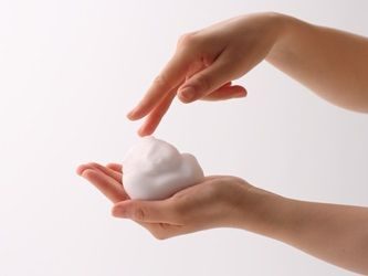 把洗面乳的泡泡,如同在肌膚表面上滾動般的溫柔洗淨吧。