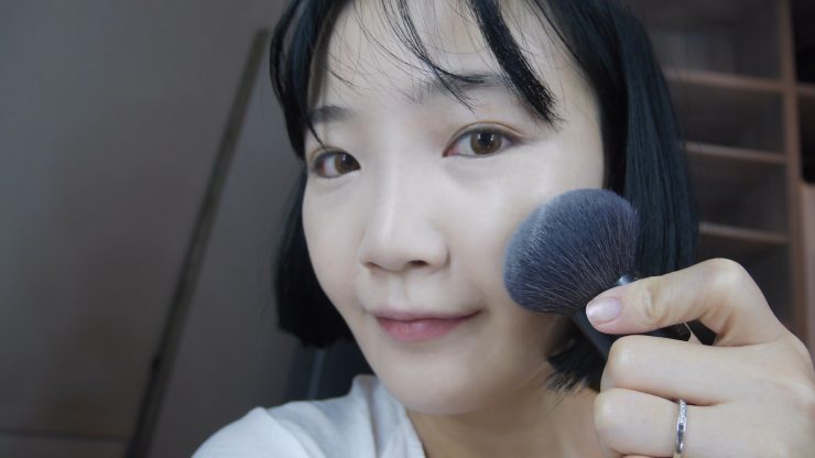 通常我上完CC霜,我會再拿遮瑕液,在在意的瑕疵地方,再多做一下遮瑕,讓我臉上的雀斑可以更隱形一點。因為上完整個CC霜的臉,其實是帶有點濕度的,所以我會再用M.A.C的大蜜粉鬆刷沾上COVER MAKER COVERMARK 柔紗極光蜜粉,做簡單的輕拍全臉定妝,我最近很愛這罐蜜粉,它得粉很透明又細緻,上上去幾乎沒有粉痕,只有感覺微微的霧化,但仍能保留臉上的微光感,這樣夏天出門也不怕CC霜不夠持久了~