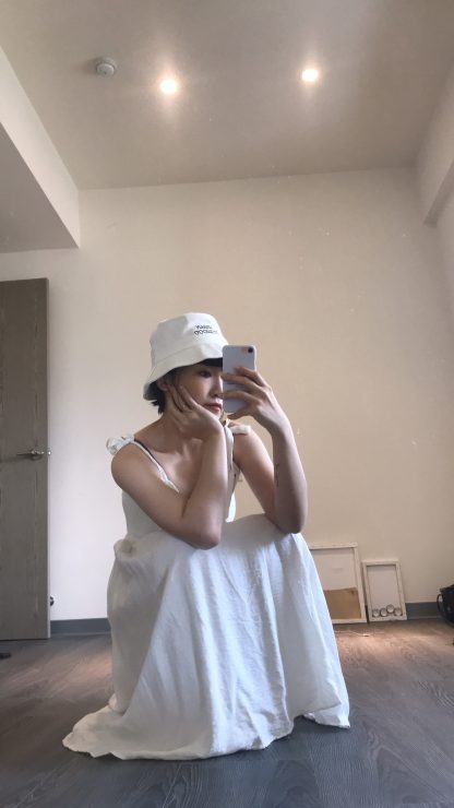 白色細肩帶洋裝x 漁夫帽