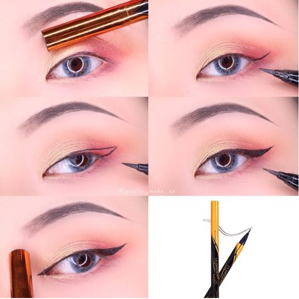 歐美眼線也相對俐落,所以我選擇使用眼線液,這次示範的是向上拉長的眼線,還有加上眼頭增加有神度