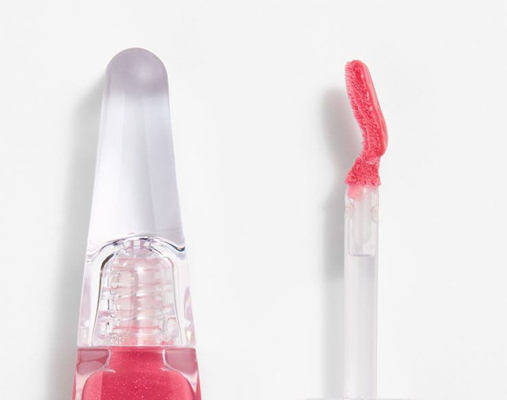 唇彩棒的角度不變,但唇部接觸的面積變大了。