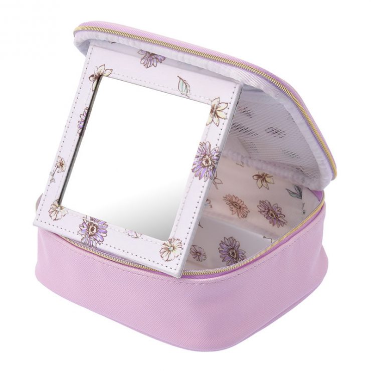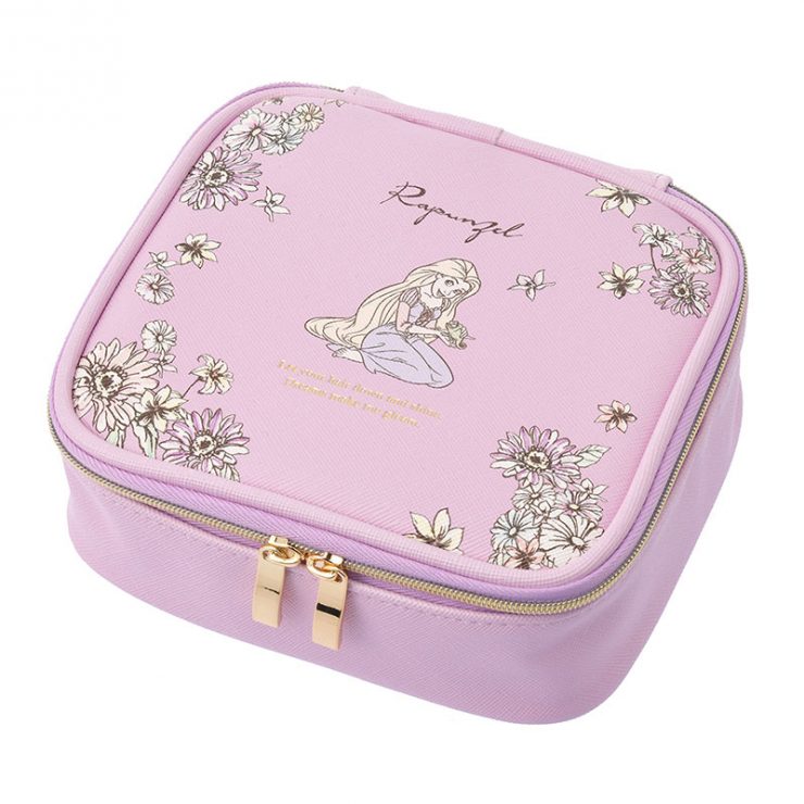 除了上述的大容量化妝包,魔髮奇緣也有這款大小剛好的化妝包,售價為日幣2,420。這一款的設計較清新素雅,裡面的收納設計得非常好。就連化妝包裡面附的化妝鏡也能運用一點巧思變成立鏡呢!