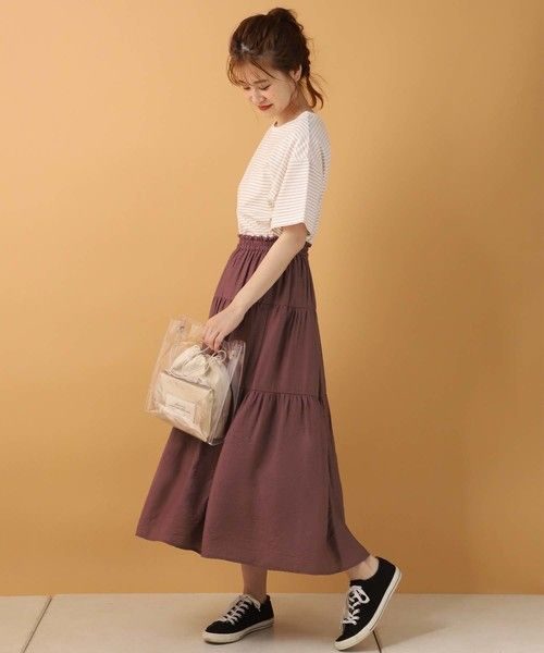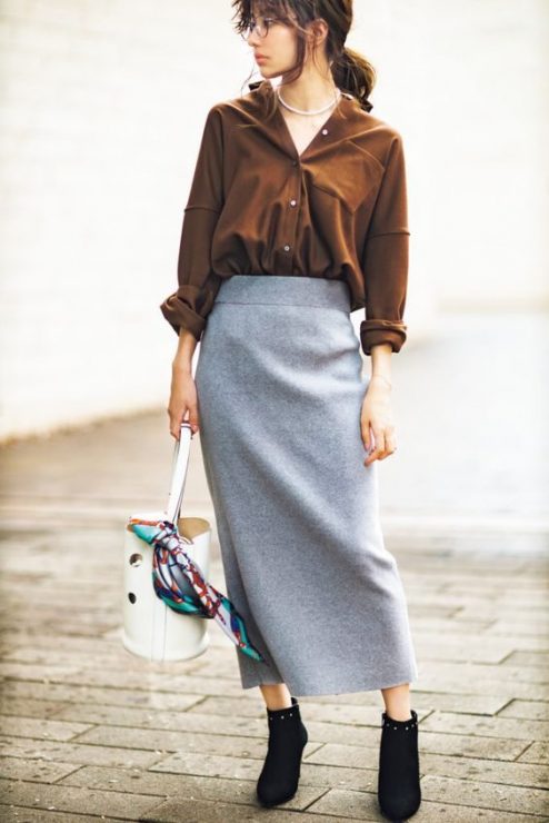 簡單的條紋T恤相當適合棕色長裙。寒冷的話,只要搭配羊毛外衣或夾克外套,就能大幅提升時尚程度!