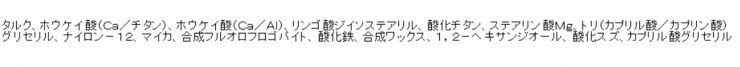 常見的有第二行的左邊數來第三個的雲母與第一行左邊數來第五個的氧化鈦,此外還有雲母鈦與硼矽酸鹽(第一行左邊數來第二個與第三個),這些成分似乎是為了呈現珍珠光澤。