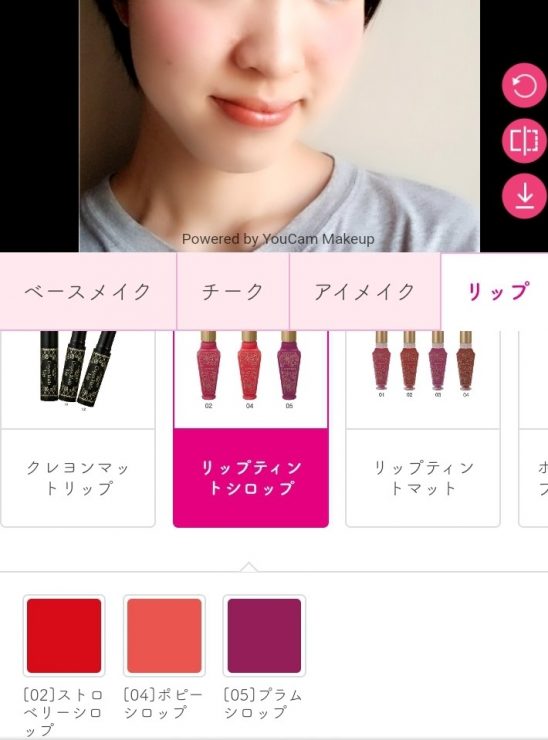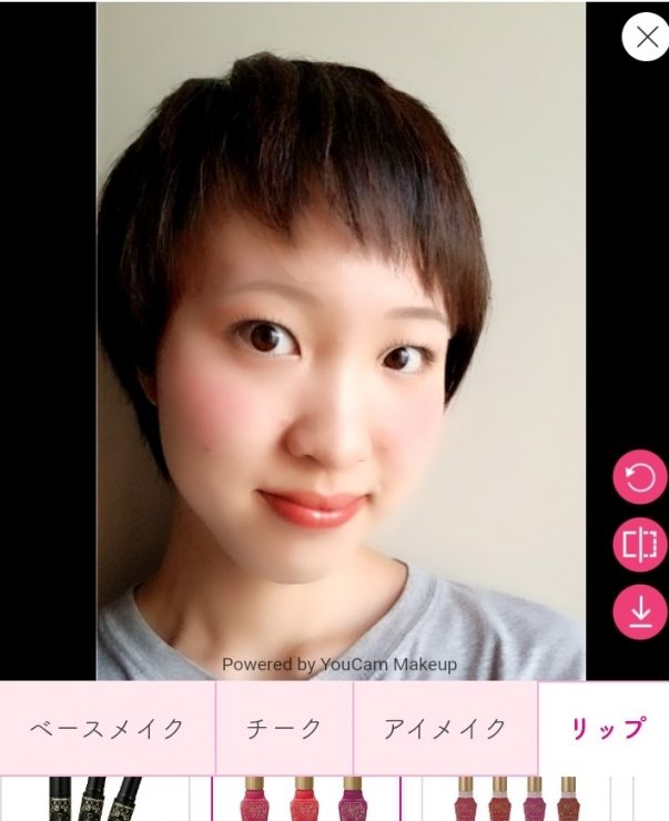 選擇好彩妝單品和色號後,上傳好的臉部相片就會變化成上好妝的模樣。