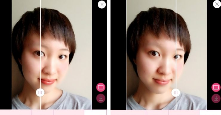 畫面中間會出現條線,右邊為化妝前,左邊為化妝後的模樣。