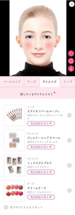 CANMAKE Makeup Simulation:查看使用的彩妝單品
